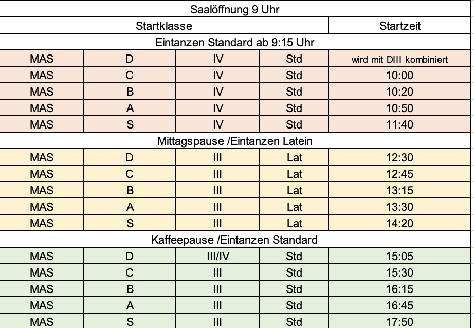 Hier die Startzeiten, die sich nach dem gestrigen Meldeschluss ergeben: